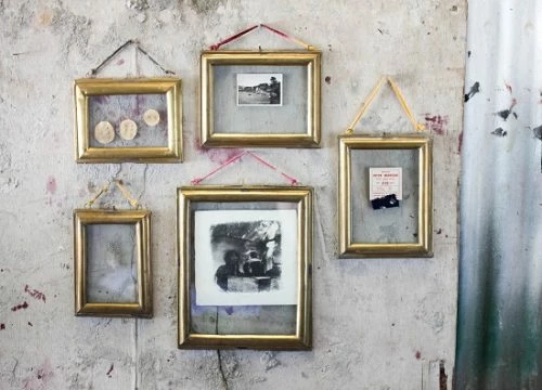 The beautiful ‘Kariba’ frames have an elegant hand molded antique brass raised edge welded around the glass. The frames have, to hang them, a strip of sari fabric.