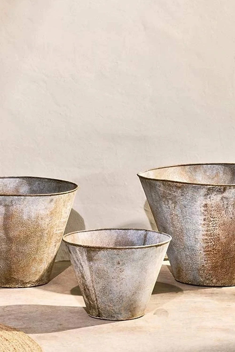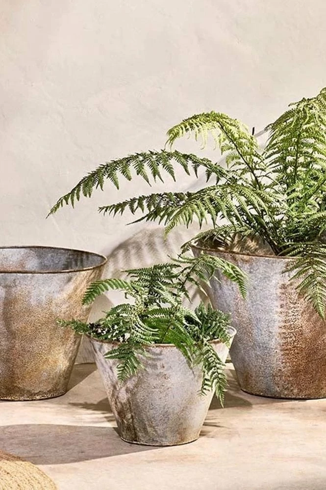 Nkuku Vases and Planters Abari Planter Aged Zinc Finish Beautiful Rustic patina Includes Drainage Holes Small 40 x 30 x 30cm Medium 50 x 40 x 40cm Large 60 x 45 x 45cm 43713