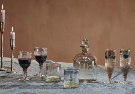 We use recycled glass to make these collections. Firstly, the waste glass is collected and washed to remove any impurities; it ís then crushed and melted down before being hand blown or placed in moulds to create beautiful new products. Colour: Smoke Material: Glass Size: 9cm x 8 cm Dia Weight: 210g These Abeeko tumblers have an attractive etched design with a choice of two subtle shades, aged gold and smoke.