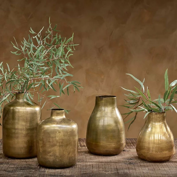 Crafted from iron and finished in an aged antique brass colour, this striking metal flower vase will add a sense of warmth to your interior. Perfect for dried foliage, freshly cut blooms, or bold botanical displays. Aged Antique Brass Iron Tapered Vase. Dimensions approx. 21cm x 16.5cm x 16.5cm x 3000ml. Opening width 8cm. Made from Iron. Colour: Aged Antique Brass. Please note: Skilfully made using traditional techniques. This handmade process means that there are small imperfections and weld marks on each piece, an honest feature that tells the story of how the product is made. Each piece is unique, please expect small variations from photograph.