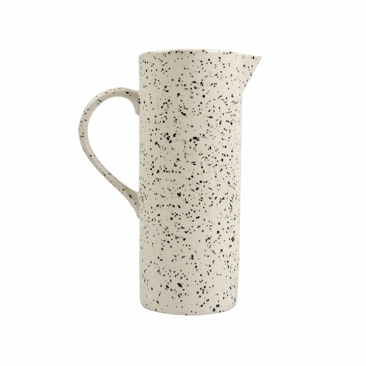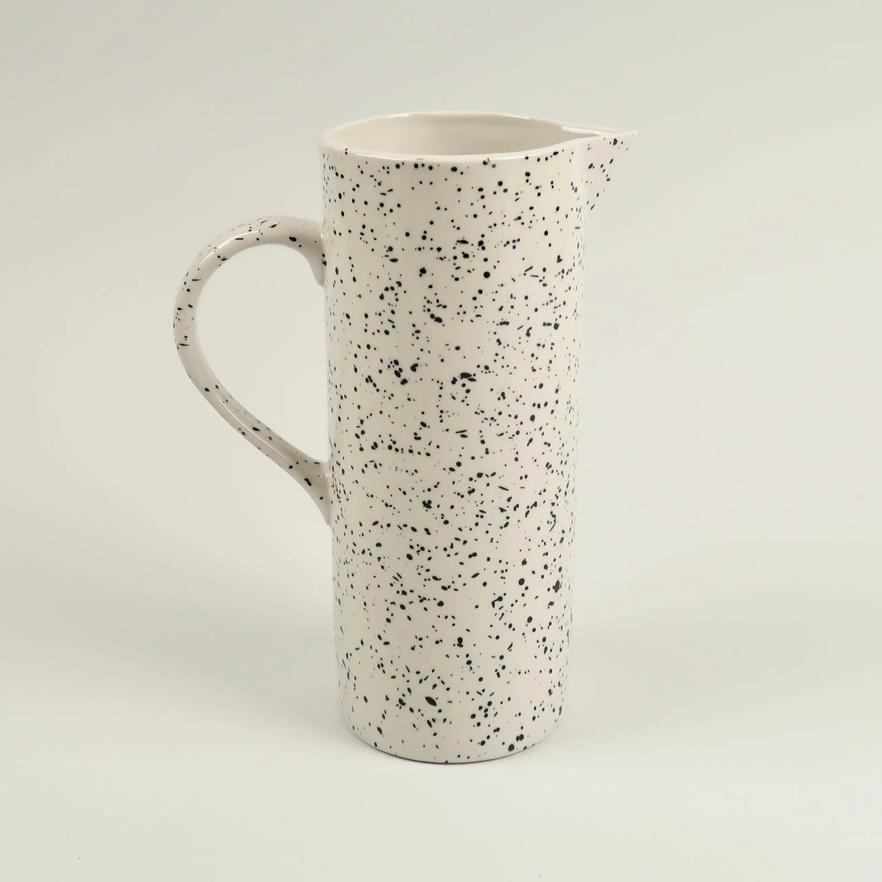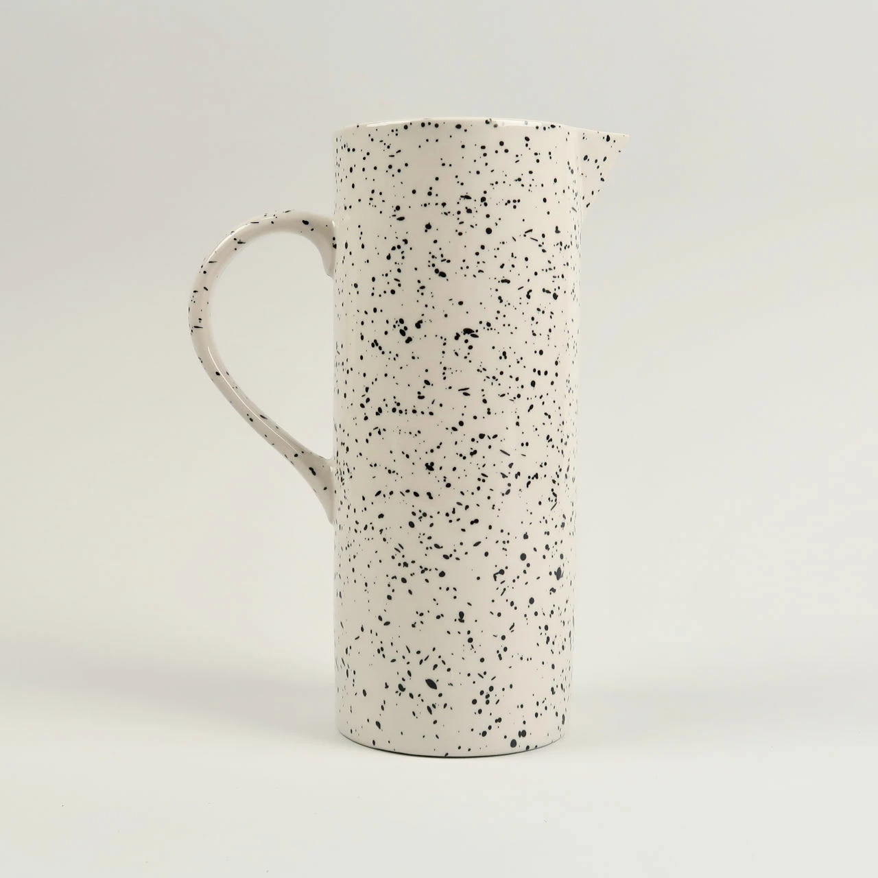This range of ceramics by Nkuku is called Ama and all features a random splatter pattern on a creamy glazed background. The range incorporates plates, bowls, mugs and this jug.
