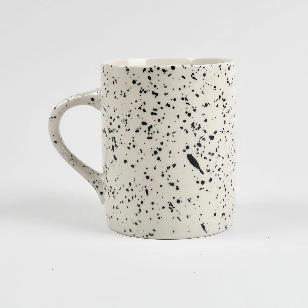 This range of ceramics by Nkuku is called Ama and all features a random splatter pattern on a creamy glazed background. The range incorporates plates, bowls, jugs and these mugs.