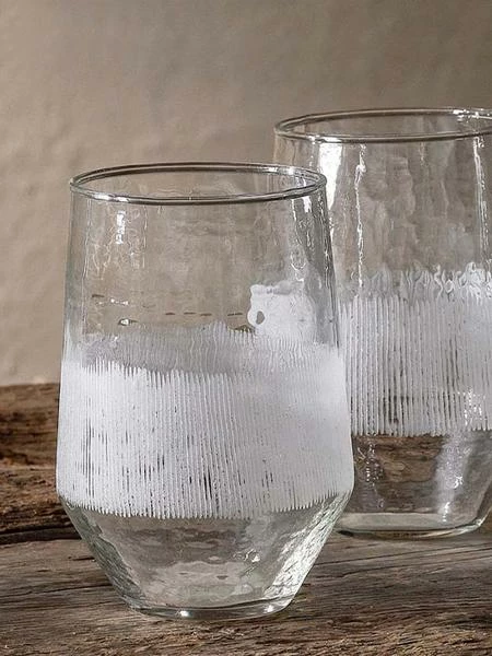 Etched tumbler Made from glass Clear H12cm x D8cm Dishwasher safe: YES Here we have Mila Wine Glass Clear from Nkuku. The Anara small etched tumbler has a striking design, with an outward tapered shape from the base that turns into a straight side. The stylish etched frosting adds an interesting aesthetic with a wonderfully tactile quality. Perfect as water glasses or for soft drinks.