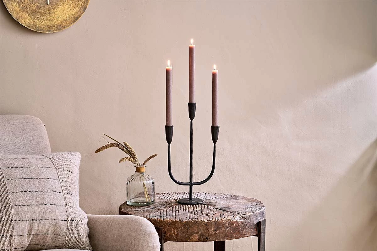 Create a striking table display with Nkuku’s Antique Black Mbata Brass Candelabra. With three arms, this handmade candlestick is crafted from brass and given an antique black finish to suit any decor. Perfect for creating displays at the dining table, the candelabra is also ideal for placing upon a sideboard in the hallway or living room to give the room an ambient glow. Its simple design is ideal for everyday use. Antique black Candelabra Three arms Handmade Product Code: 35227, Antique Black.