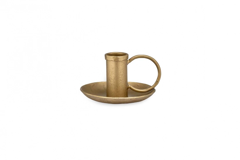 Candlelight creates a magical ambience and this individual Amiri iron candlestick brings a sense of nostalgia for a bygone age. The elegant design has a charming handle and dish and the antique brass tones add a warmth that will glow under a flickering flame.