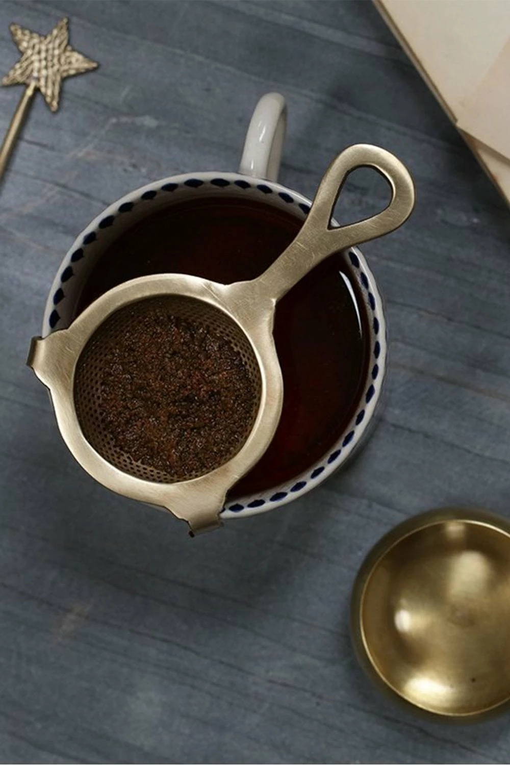 Nkuku’s antique brass tea strainer is a charming take on a traditional piece. Crafted from brass with a gold finish, this beautiful tea strainer will help you make the perfect cup of tea! Tea strainer Brass Gold finish Traditional design.