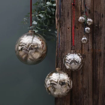 Each glass silver bauble is handmade by skilled artisans and features an antique sari tie.