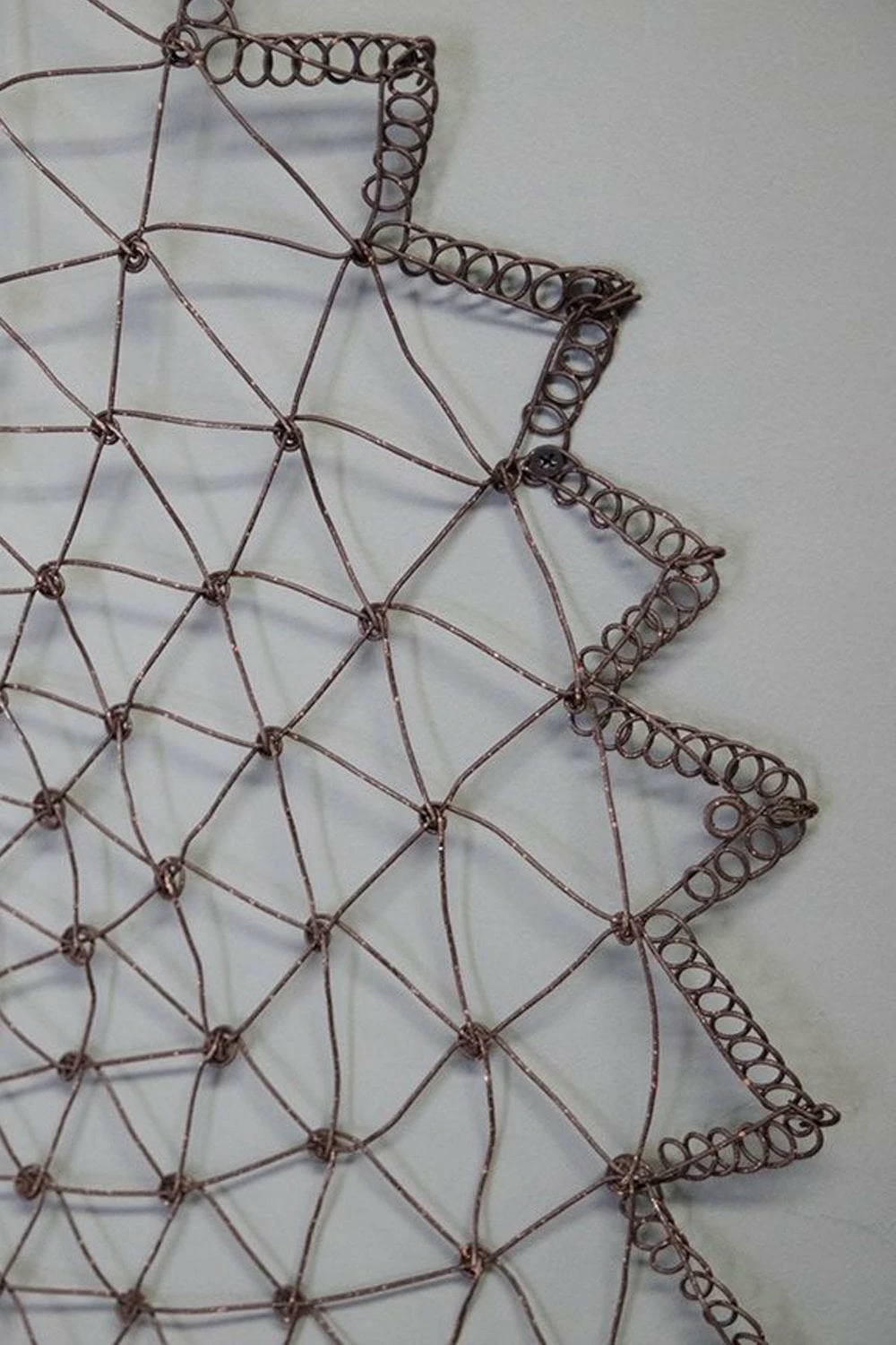 Wire Small: 0.5 x 72cm Large: 0.5 x 118cm We love the beautiful Arna Wire Wall Art from Nkuku’s latest collection. Perfect for creating a unique display in your home, this intricately designed piece has been skilfully made by hand in a circular design that fans out the sun at the edges. For indoor and outdoor use, the Arna wall art looks amazing as a standalone piece, or the two sizes can be mixed to create an impressive display. Handmade Wall art Screw holes that allow it to be attached to the wall Rust Product Code: 35236