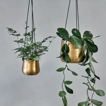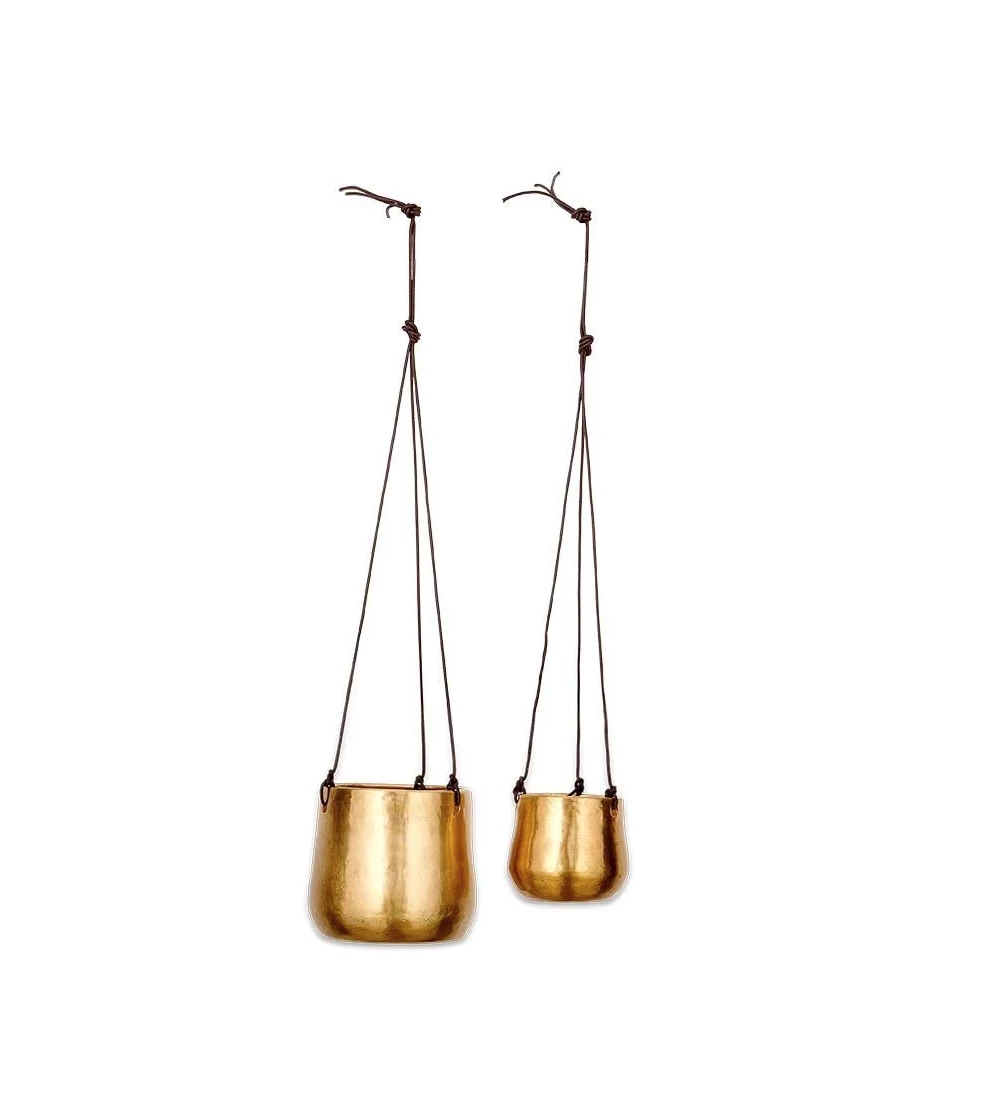 The golden hues of brass of Nkuku’s Atsu planters really extenuate the smooth contours of this elegant hanging pot. The brass is a striking backdrop against green foliage making an eye -catching combination. Each planter is hung with leather ties.