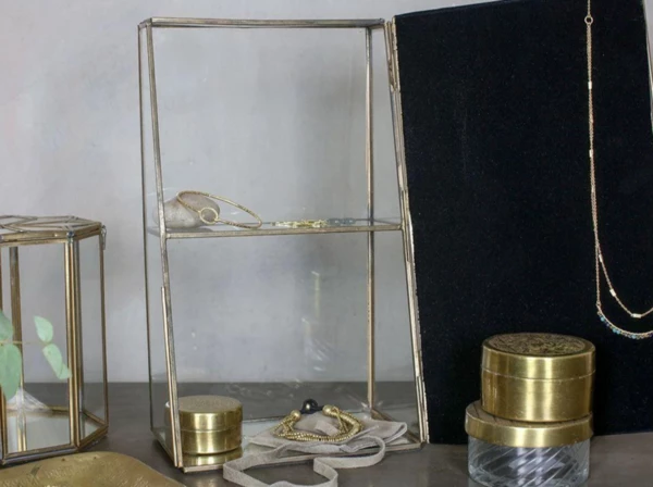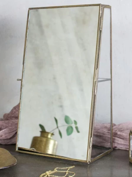 This elegant Bequai mirror cabinet makes a stylish dressing table accessory. The attractive mirror hides a small cabinet, perfect for holding jewellery and collectables. Words of Wisdom The metal is skilfully soldered around the glass with traditional tools; this handmade process means that there are weld marks on the joins of each piece, a feature that we love as it tells the story of how the product is made. Dimensions: H31.5cm x W18cm x D10.5cm