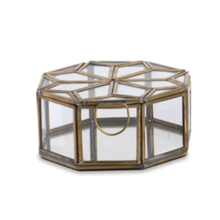 Organise small trinkets and special keepsakes in seconds with Nkuku’s artisanal Bequai Pot. This small star-shaped design comes expertly crafted in India by skilled craftspeople and shows off a delicate brass and glass construction. Simply flip the lid open to reveal the perfect amount of space to safely stow away your finest jewellery pieces. A striking addition to any dressing table or desk.