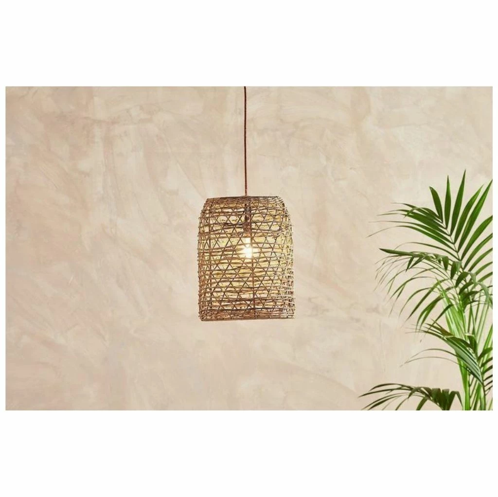 The warm, natural hues of our small Beru rattan shade are handmade from sustainably grown rattan. The endearing design is inspired by traditional Indonesian fishing baskets. The basketry work casts pretty shadows on the wall when lit. This perfectly proportioned cylinder shaped shade is perfect for any room in the house.