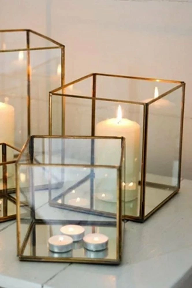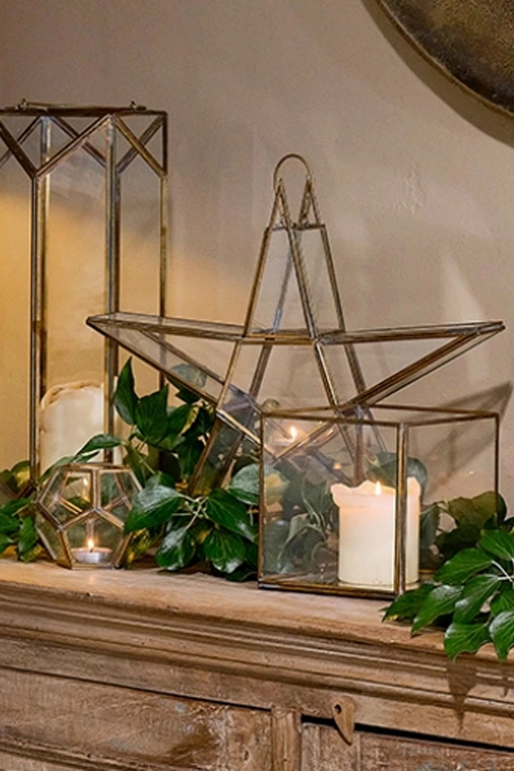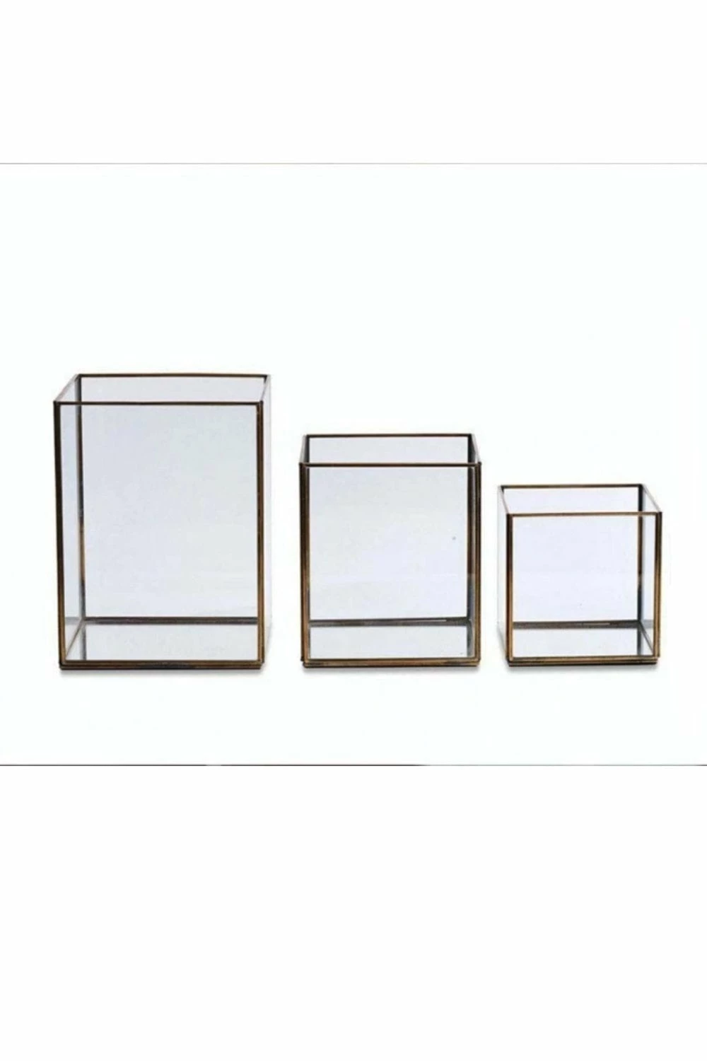 Nkuku Hurricane Candle Holder Bimala Brass Glass Brass Decorative Display Box 16x16x16cm