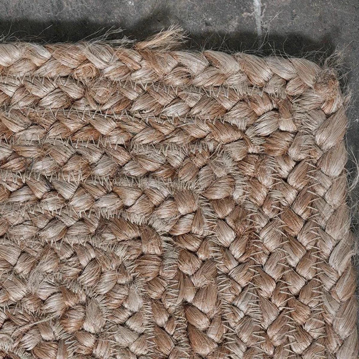 This timeless rug is beautifully hand braided from hemp in this eye-catching traditional pattern. The warm gold hues of the hemp give the rugs a tactile, neutral appearance and understated style.