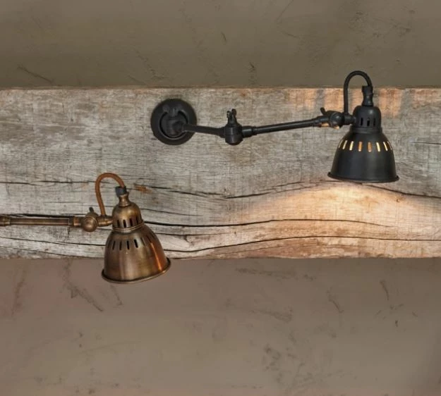 These industrial Tubu brass wall lights have an extendable neck that can be adjusted to the perfect position. We love the rustic finish and practical but stylish design. Base width is approx 8cm (dia).