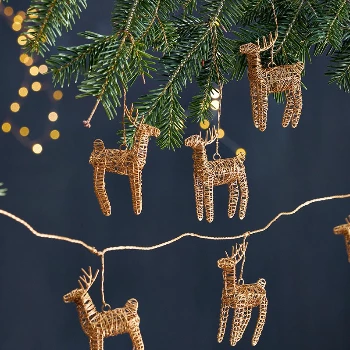 Characterful and fun, these elegant reindeer are sculptured from brass wire in this attractive garland, perfect for bringing festive delight the Christmas season.