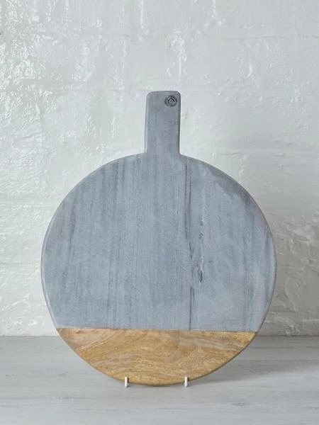The smooth texture of these solid grey marble and mango wood Bwari chopping boards make them a tactile and useful board. They transfer from the kitchen to the table with ease and provide a great way to serve sharing foods and nibbles. To care for your marble and wood boards please hand wash only. Wipe clean with a damp cloth and do not soak. Please do not use harsh chemicals or abrasive cleaners.