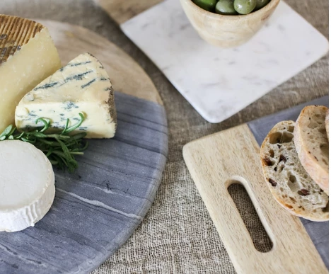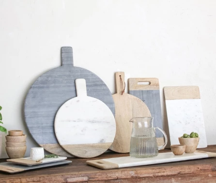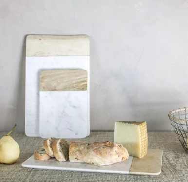 The Bwari collections are made from natural marble and there will be variations in the finish of each piece. Our marble is sourced from Rajasthan. Our mango wood pieces are created from sustainable mango wood. The Mango trees are initially grown for their fruit, harvested over a number of years. Once the trees have stopped bearing fruit, they can be cut down and used to make our wooden pieces. This allows farmers to plant more trees and provides them with a supplementary income. Colour: White Material: Marble and Mango Wood Size: 23.5cm x 16.5 cm Weight: 1.35Kg Food Safe: Yes Dishwasher Safe: No Microwave Safe: No Oven Safe: No Bwari round marble boards are handmade using traditional tools in the shadows of the Taj Mahal. This elegant, durable material is ideal for chopping boards and serving platters. The grey marble combines with the natural mango wood in this contemporary yet timeless design.