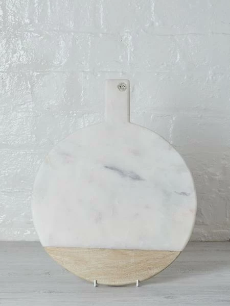 The smooth texture of these solid white marble and mango wood Bwari chopping boards make them a tactile and useful board. They transfer from the kitchen to the table with ease and provide a great way to serve sharing foods and nibbles. To care for your marble and wood boards please hand wash only. Wipe clean with a damp cloth and do not soak. Please do not use harsh chemicals or abrasive cleaners.