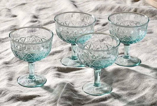 The Karala champagne glasses have a striking cut glass pattern in a gentle green hue that compliments the cut glass design. Perfect for any celebration, the Karala have a relaxed aesthetic and are ideal for serving mousses and ice creams.