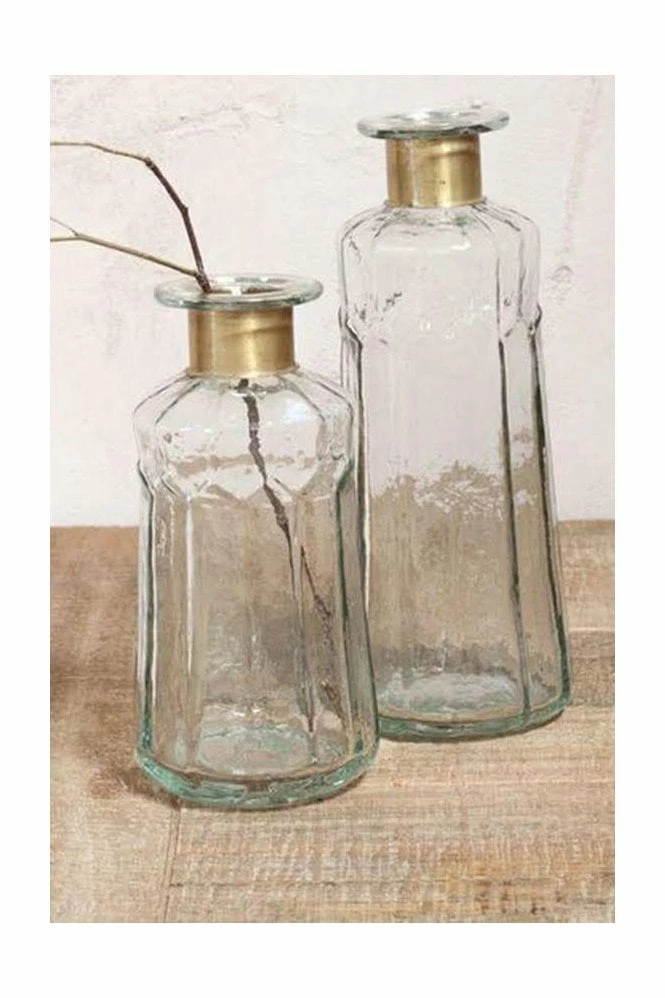Chara Bottles Hammered glass Brass Ring Recycled glass Hand made Small 18 x 9 x 9cm Capacity 525ml Large 23 x 9 x 9cm Capacity 775ml Hand wash