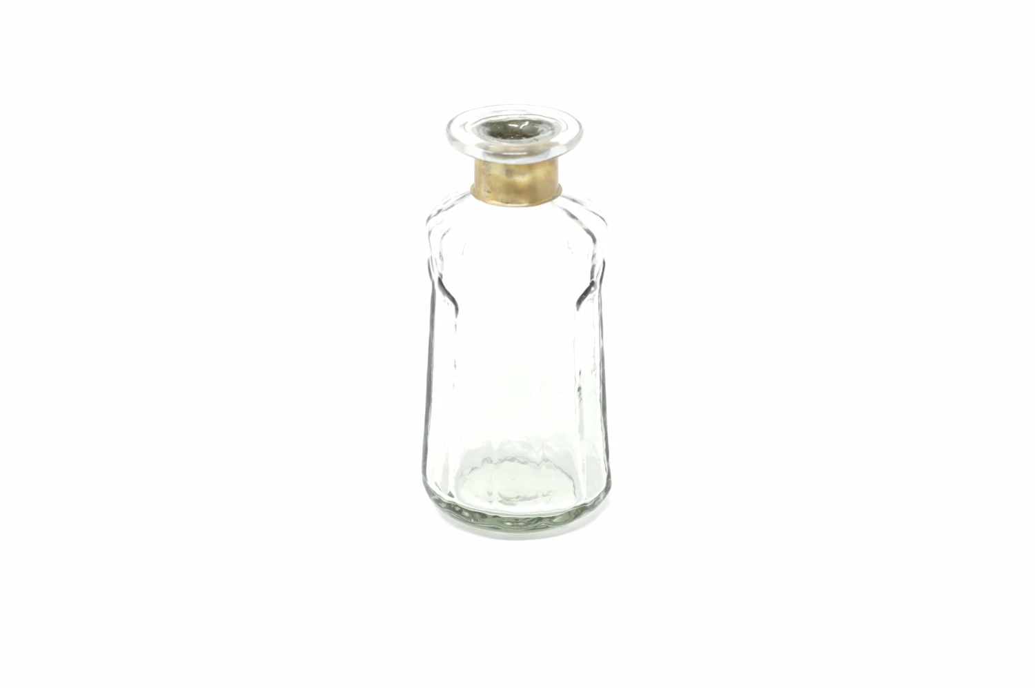 These handmade pieces involve hammering the glass with traditional tools providing a subtle textured affect. The glass is skilfully blown through the brass ring creating this elegant shape. Solder marks are often evident on the brass as a result of this complex handmade process. Solder marks are often evident on the brass as a result of this complex handmade process.