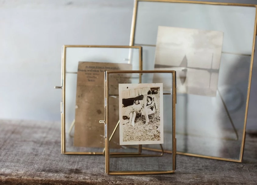 Stylish and simple brass standing frames. Not just for photos – great for displaying those special keepsakes.
