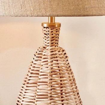 Bring a natural touch with the Nkuku Darma wicker lamp. The curved base of this table lamp is beautifully woven from natural wicker in an intricate and ordered web. This lamp feels light and airy and its neutral tones give it a practical versatility. We also sell this lamp in a smaller size.