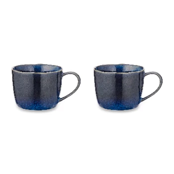 A stoneware coffee mug with a deep blue glaze. The mugs are made using a reactive glaze meaning no two items are the same.
