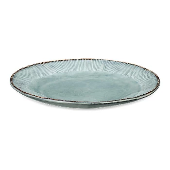 The dusty blue glaze of malia dinner plate has an attractive and tactile etched detail. The collection encompasses a full dinner service, serving bowls and perfectly proportioned jugs. The reactive glaze means that no two pieces are the same. Dimension: 2.5 x 28 x 28cm.