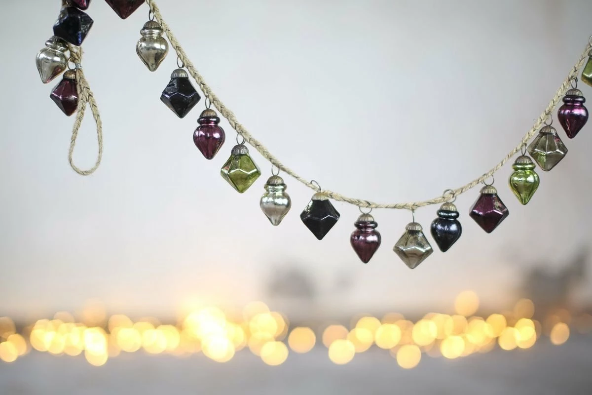 These beautiful garlands are a Christmas essential; each pretty bauble is handmade from recycled glass and joined together with natural jute. Each garland is over a metre in length.