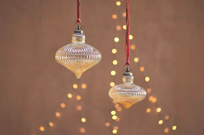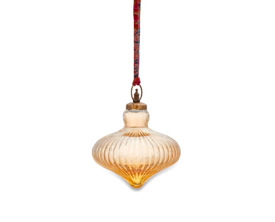 Glorious gold – luster shimmer across this eye -catching Eliza giant bauble. Its generous proportions make it a show stopping festive feature. The ribbed detailing sits beautiful on the elegant shape. Each one is strung with a brown velvet tie.