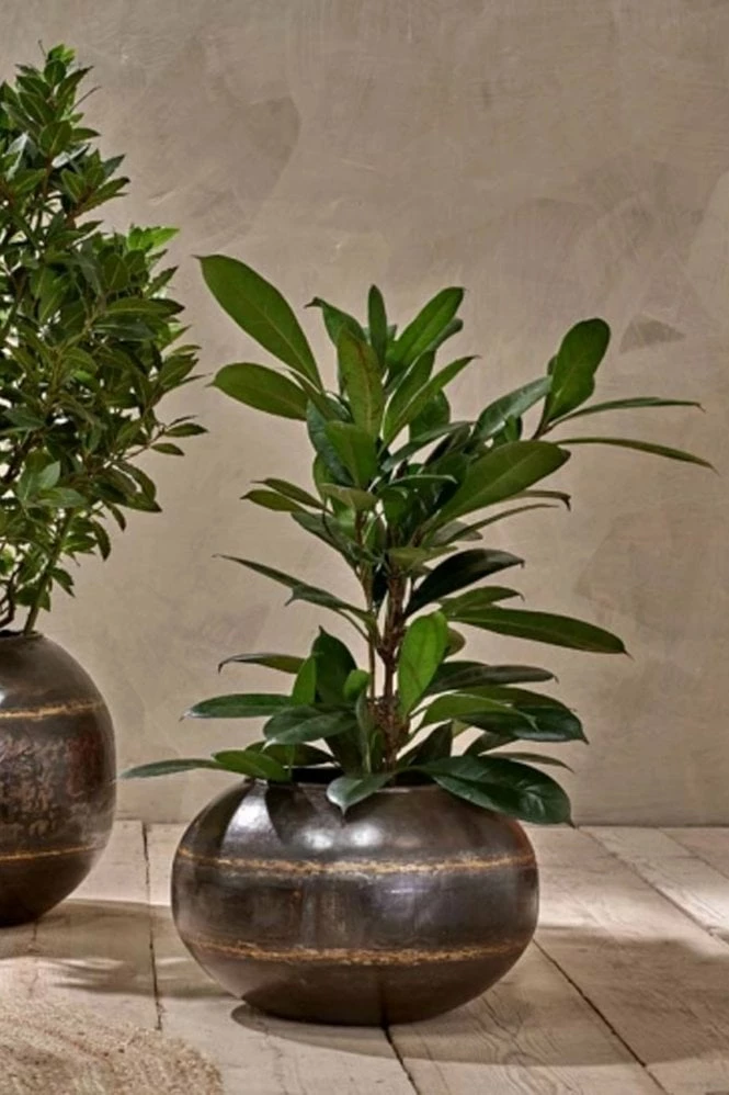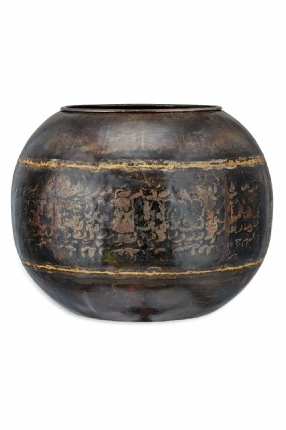 Nkuku Endo Reclaimed Iron Globe Planter Organic Shape Curvaceous Iron Vase Golden Brass thread 23x36x36cm 33x43x33cm