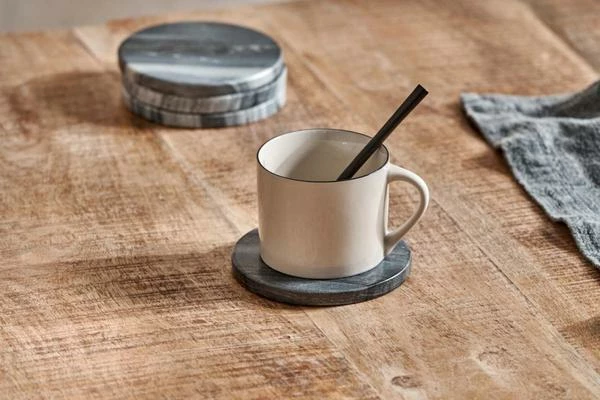 The soft, variegated tones of tactile marble give these practical Esa coasters tactile appeal. These collections are made from natural marble and there will be variations in the finish of each piece. Our marble is sourced from Rajasthan. 1 x 11 x 11cm