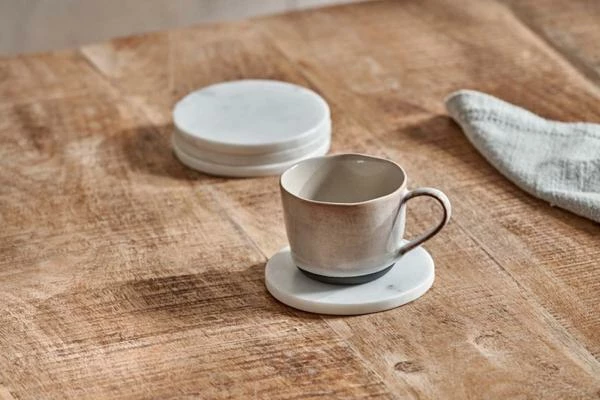 Cool, smooth and tactile our collection of Esa table mats and coasters are cut from solid marble. The natural variegated deposits give their own unique look to each piece. They make a timeless addition to a table setting whether it`s everyday suppers or more formal occasions. These collections are made from natural marble and there will be variations in the finish of each piece. Our marble is sourced from Rajasthan. 1 x 11 x 11cm