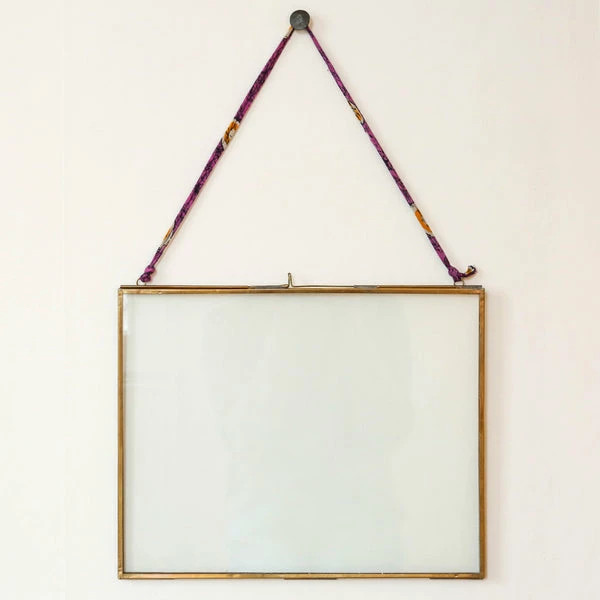 Kiko frames are one of Nkuku’s most iconic pieces. The glass front and back make them great for photographs, or other precious keepsakes like postcards, concert tickets and drawings. They look great grouped together in a range of sizes and orientations. Each one is strung with a recycled sari tie. The metal is skilfully soldered around the glass with traditional tools; this handmade process means that there are weld marks on the joins of each piece, a feature that we love as it tells the story of how the product is made. Brass, Glass 36 x 29 x 1cm
