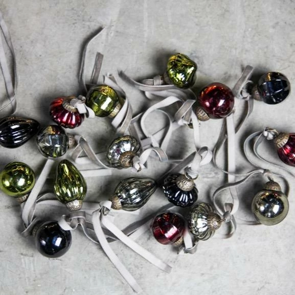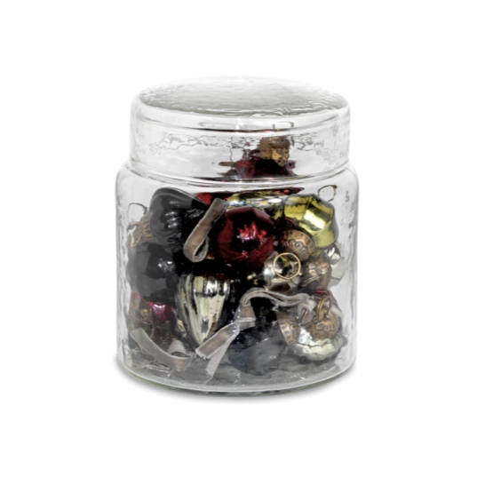 Inspired by traditional sweet jars, these elegant glass pots are filled with a selection of traditional glass baubles in a mix of festive colours and shapes. Easy to store and keep safe year after year. Both the jar and decorations are made from recycled glass. Each set includes sixteen baubles and velvet hanging ties. We use recycled glass to make these collections. Firstly, the waste glass is collected and washed to remove any impurities; it is then crushed and melted down before being hand blown or placed in moulds to create beautiful new products. Dimensions 13 x 11 x 11cm