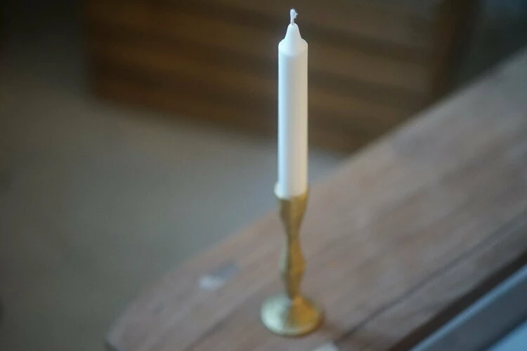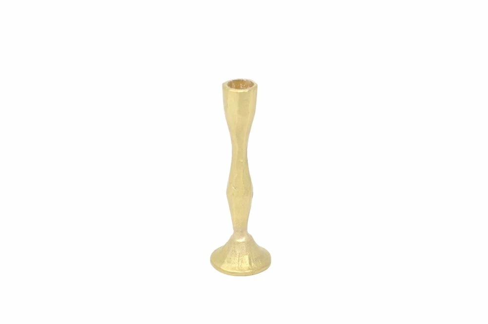 This elegant brushed gold candlestick is hand forged from brass and makes a striking addition to any table.