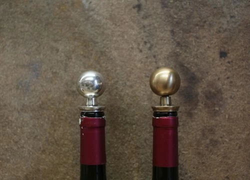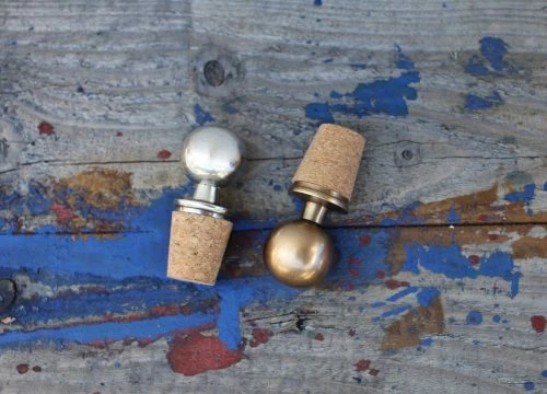 Aged golden brass bottle cork an elegant and simple detail, with a minimalist design to give a special touch to your table. 3.5 x 7.50 cm.
