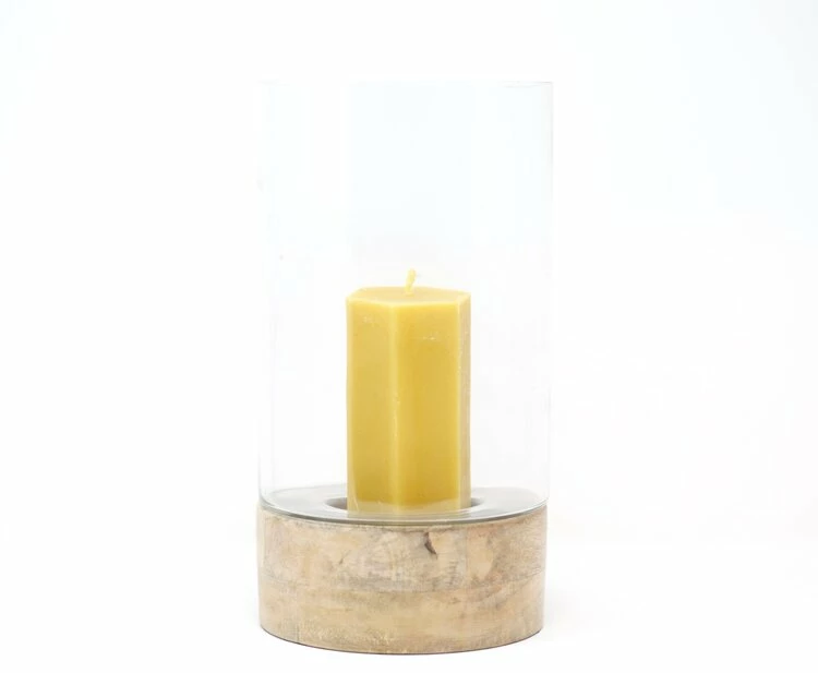 Recycled glass and natural sustainable mango are used to make these beautiful Idha hurricane lanterns.