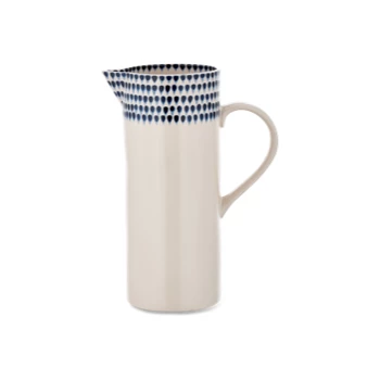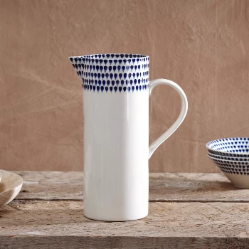 These beautiful Indigo Drop Design Jugs from Nkuku are handmade by craftsmen in Vietnam using age old techniques. They form part of a dinnerware collection including cereal bowls, dinner plates and serving dishes. Each piece is hand painted. It has cream colour with indigo pattern.