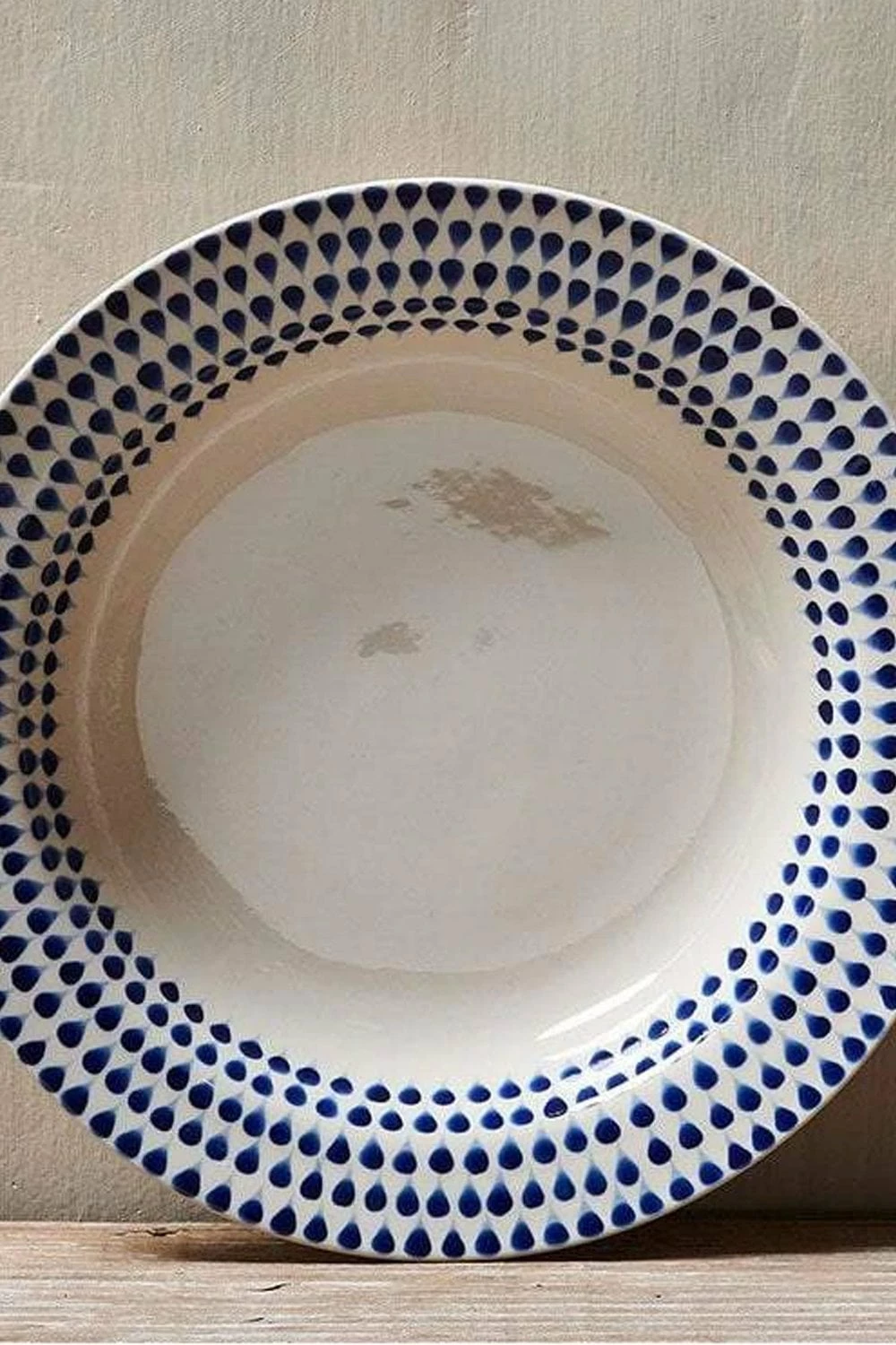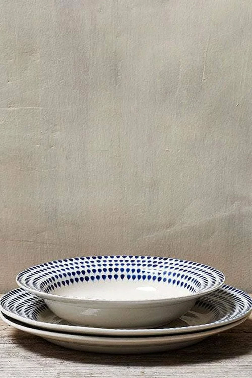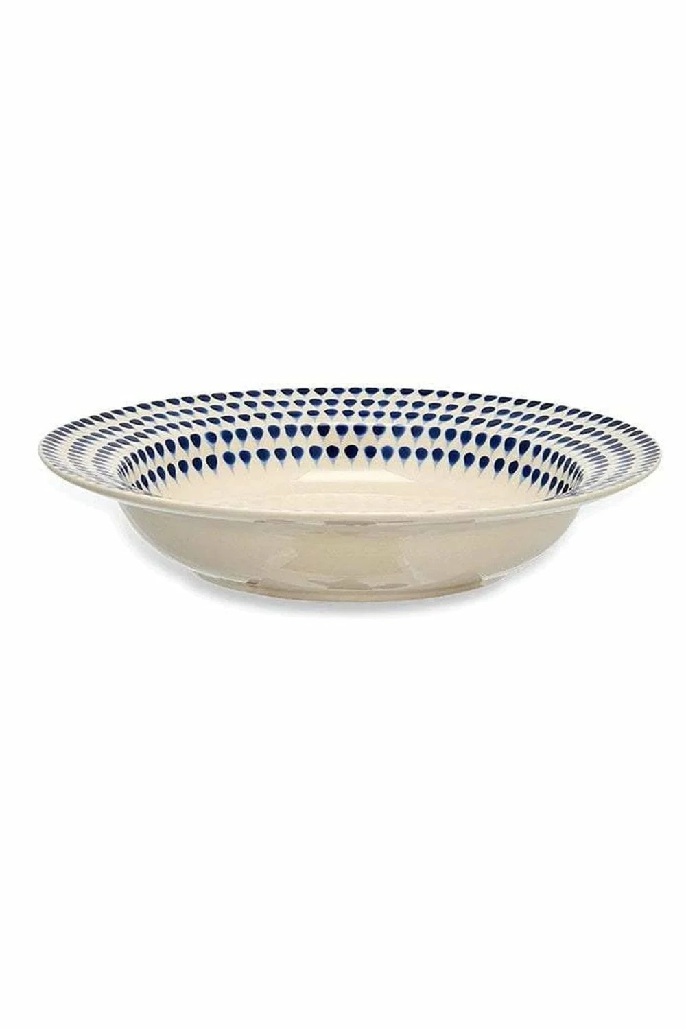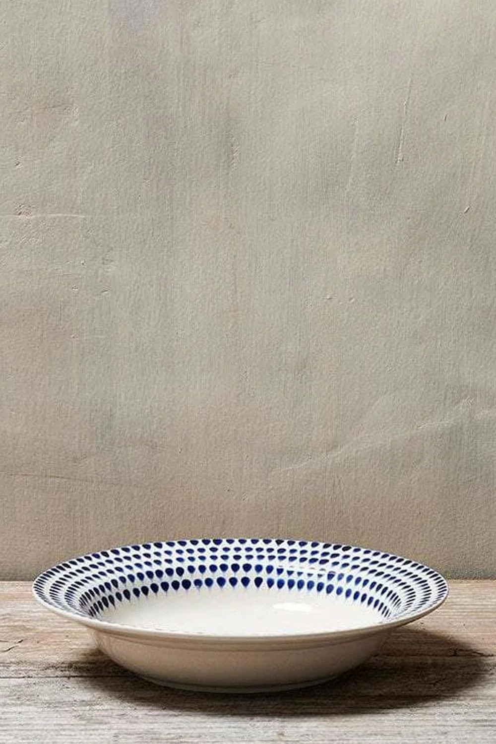 Nkuku Kitchen and dining Indigo drop Handpainted Cream and indigo Pasta Bowl Deep Base Wide Rim Handmade using a traditional potter’s wheels Dishwasher, microwave and oven safe 4.6cm x 23 x 23cm 20190