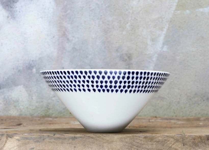 We adore this beautiful ceramic table and serveware. Each one is hand painted with this pretty indigo drop design and handmade in Vietnam, using age old traditions that have remained unchanged for generations.