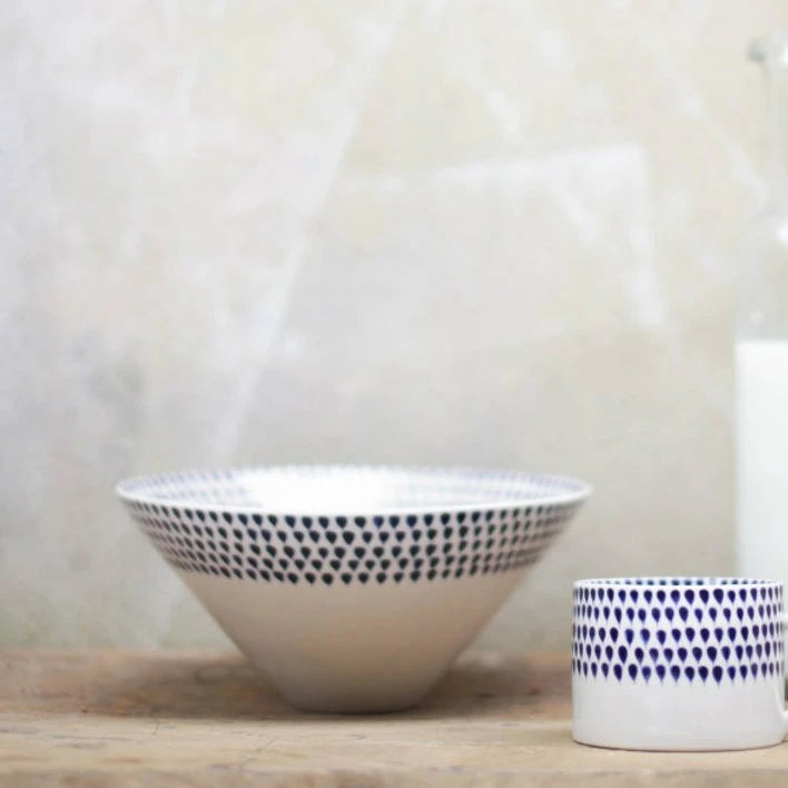 We adore this beautiful ceramic table and serveware. Each one is hand painted with this pretty indigo drop design and handmade in Vietnam, using age old traditions that have remained unchanged for generations.