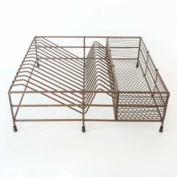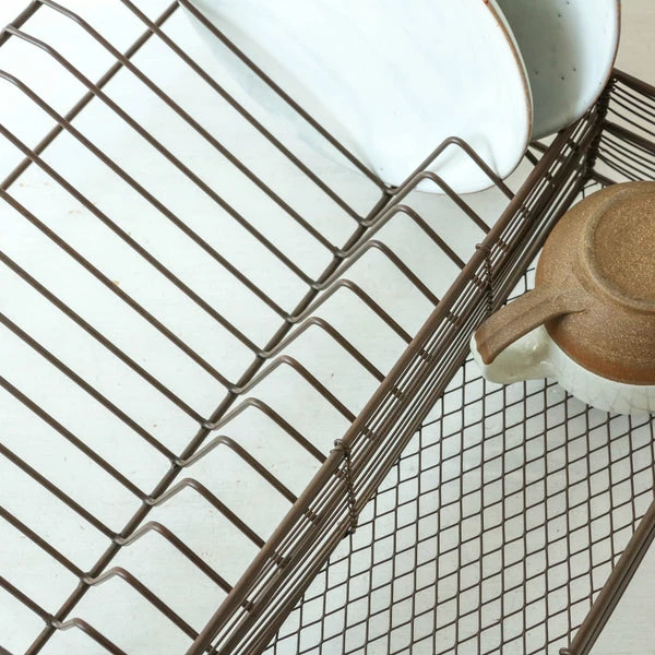 The low open design of this striking Inkollo dish rack makes it a practical addition to any kitchen. This uncomplicated but well-designed dish rack has plenty of space for plates, as well as a separate area for cutlery, glasses and mugs. The dish rack has an appealing aged brass finish. It can double as a neat storage holder for crockery. Made from: Iron