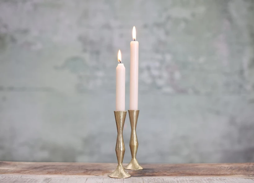 This elegant Jahi candlestick is hand forged from brass in this sophisticated design. They make a striking addition to the table.