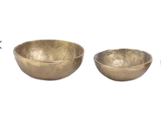 Colour: Brushed Gold Material: Brass Size: 7.5cm x 7.5cm x 3cm Weight: 430g Food Safe: Yes Dishwasher Safe: No Microwave Safe: No Oven Safe: No These sublime Jahi gold bowls are handmade with a golden brass finish and rustic, imperfect rim. They make a beautiful decorative accessory. Decorate with the Large Bowl and Plates.