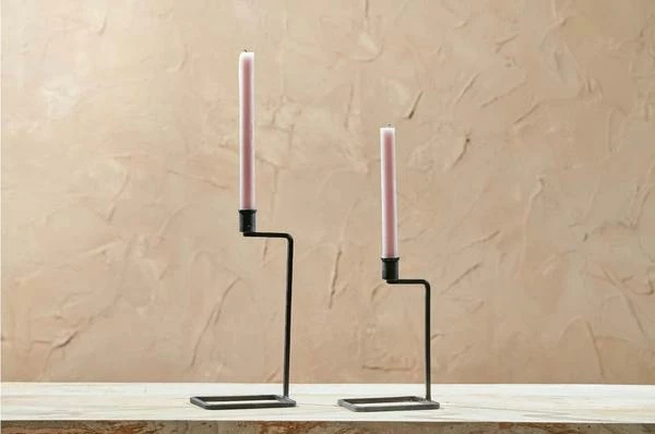 The striking antique black finish of these brass Janya candlesticks make a stylish feature. The elegant angular design sits beautifully on a table. Large 30 x 15 x 11cm.