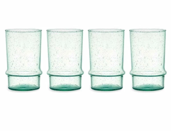 Our playful Kaneti bubble tumbler is made from recycled glass, which has been mouthblown into this simple mould. The bubbles in the glass are a unique part of this process, adding to the artisan qualities of the glass. Each tumbler has a simple ridge detail at its base.
