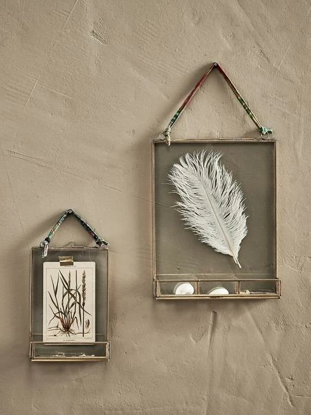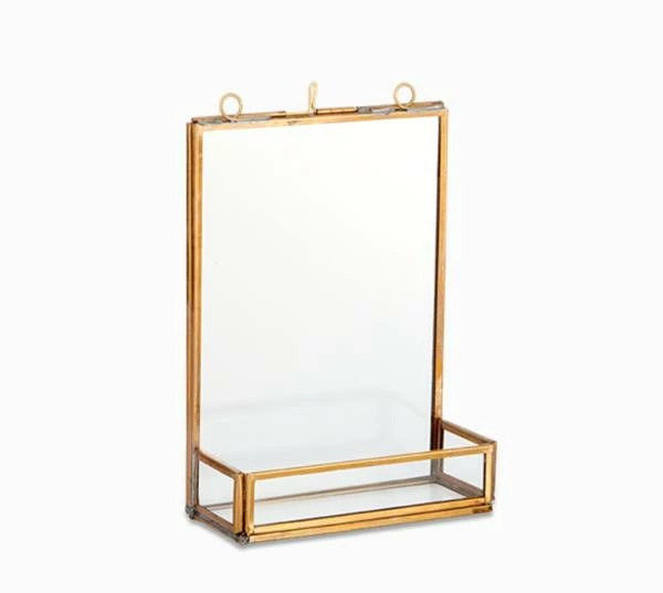 This elegant NKUKU Kiko brass frame shelf provide a unique and stylish way to decorate and personalise and useful accessory. The see-through frame is are perfect for displaying foliage, fabrics, artwork or images. The small shelf is ideal for holding jewellery and collectables.